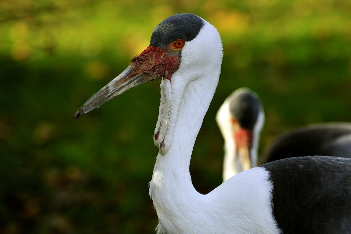 Seinen Namen hat der Klunkerkranich von den zwei weiß befiederten Lappen, die an beiden Seiten der Kehle herunterhängen. Mehr als andere Kranicharten ist er von Feuchtgebieten abhängig. Da diese aber immer mehr zur landwirtschaftlichen Nutzung trocken gelegt werden, gehört der Klunkerkranich heute zu den meist bedrohten afrikanischen Kranichen.