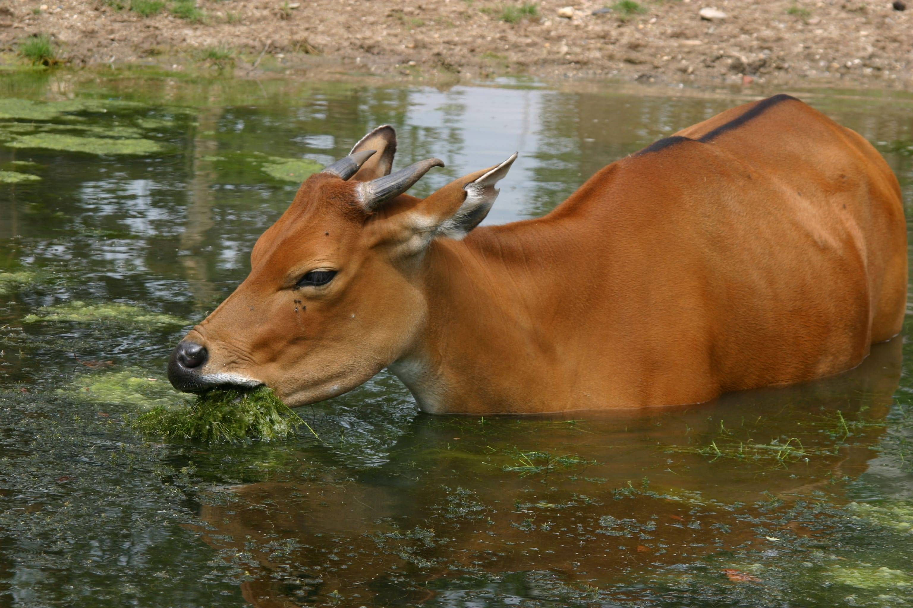 Der Banteng stammt ursprünglich aus Südostasien. Für menschliche Begriffe ist er ein sehr anmutiges Wildrind. Kühe haben in der Regel ein hellbraunes, Bullen ein dunkelbraunes bis schwarzes Fell. Banteng-Gruppen besten aus 2 bis 40 Kühen und ihren Kälbern. Dazu kommt jeweils ein Bulle. Daneben gibt es Herden männlicher Junggesellen und einzelgängerische Bullen, die zum Führen einer Herde zu alt oder zu schwach sind. Die Tiere sind in freier Wildbahn stark bedroht. Bejagung und Lebensraumzerstörung machen ihnen massiv zu schaffen. Der Zoo hat sich deshalb entschieden, die Tiere wieder in seinen Bestand aufzunehmen. Schon von 1960 bis 2002 waren die exotischen Rinder in Köln Zuhause. Ihre Anlage musste damals dem Bau des neuen Elefantenparks weichen.