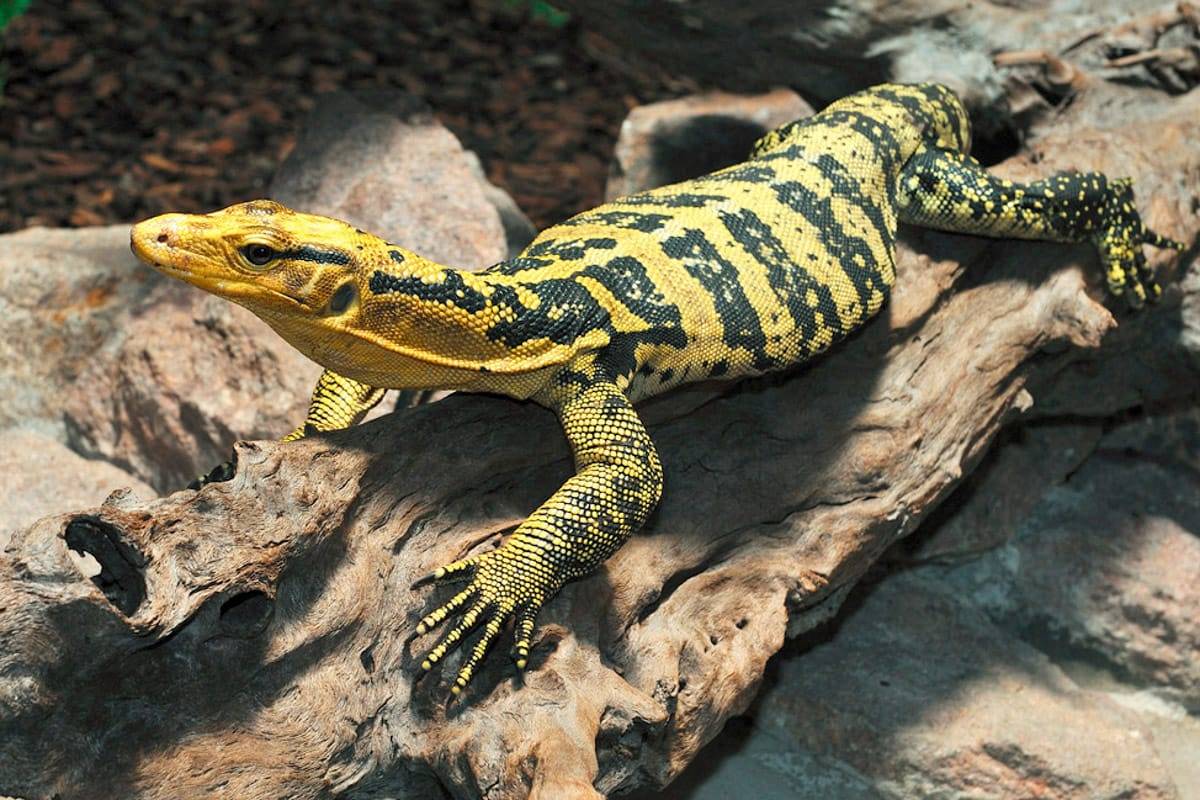 Der Gelbgebänderte Philippinen- Bindenwaran wurde lange Zeit als Unterart des Bindenwarans (Varanus Salvator) eingestuft. Die Färbung und Zeichnung beim Gelbgebänderten Philippinenwaran zeigt einen ausgesprochen großen Anteil an Gelb. Die Tiere sind sehr gut an ein Leben am und im Wasser angepasst. Dies kann man auch am Körperbau ablesen, zum Beispiel dem seitlich strak zusammengedrückten Schwanz, der im Wasser als Ruderorgan dient. Die Bindenwaranarten sind allesamt gute Schwimmer und auch Taucher. Wegen seiner stabilen und attraktiv gemusterten Haut ist das Leder der Bindenwaranarten im Reptillederhandel sehr beliebt. Bei der Nahrungssuche ist der Gelbgebänderte Philippinen- Bindenwaran nicht sehr wählerisch. Er frisst alles, was er fangen kann.