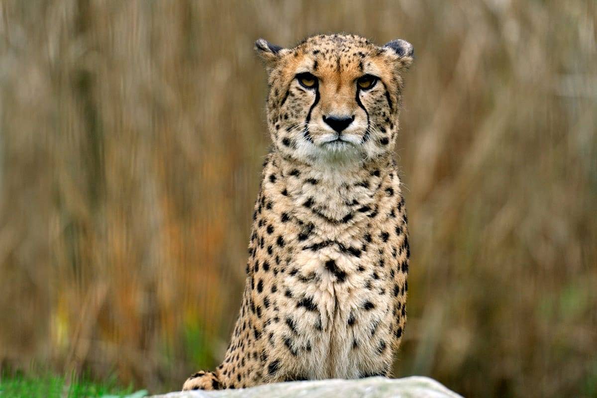 Geparden sind mit einer Spitzengeschwindigkeit von 110 km/h schneller als jedes andere Tier. Sie beschleunigen in wenigen Sekunden auf 100 km/h - so schnell wie ein Sportwagen. Ihr Körperbau ist ganz auf das Erreichen hoher Geschwindigkeit angelegt. Der Kopf ist klein, der Rumpf lang gestreckt und flach. Dadurch ist der Luftwiderstand gering. Die Beine sind lang und dünn. Durch die fehlenden Krallenscheiden sind die Krallen auch in eingezogenem Zustand sichtbar. Sie dienen als Spikes. Durch die extreme Biegsamkeit der Wirbelsäule kann die Schrittlänge um mehr als 70 cm verlängert werden. Die hohe Geschwindigkeit kann er allerdings nur über eine Strecke von ca. 800 m halten.