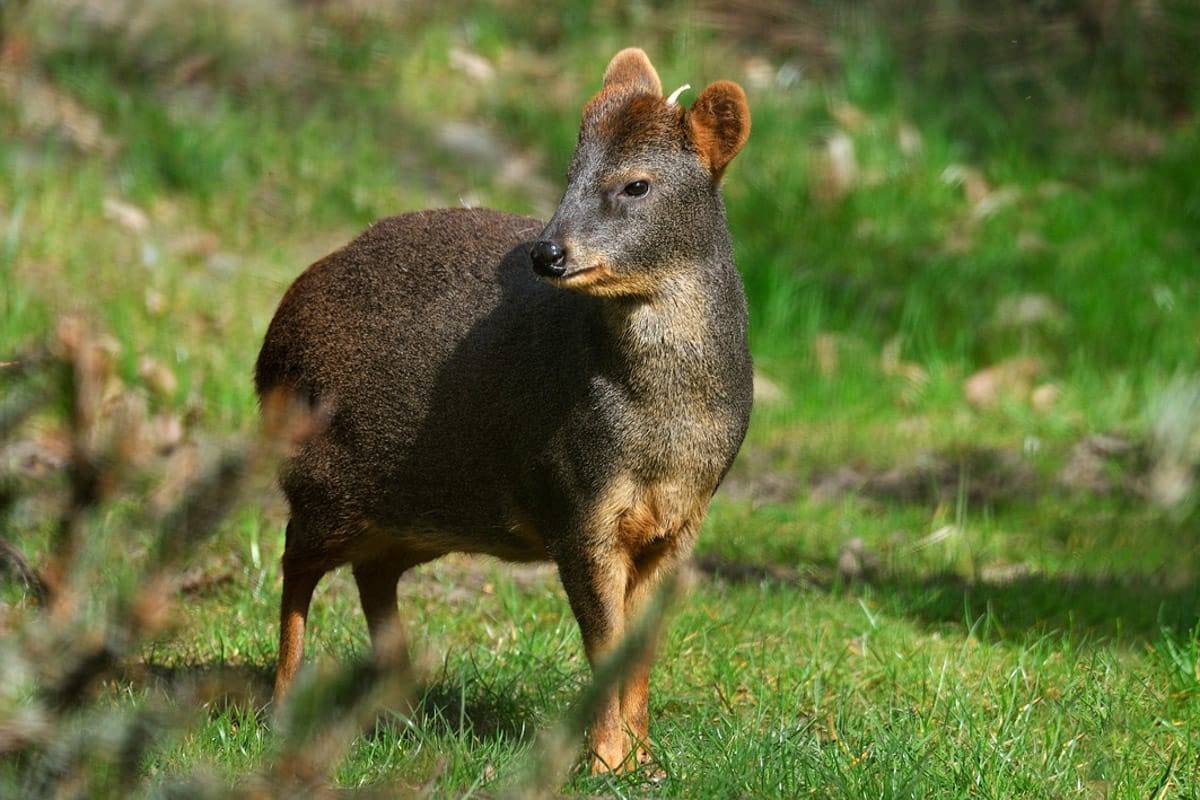 Der Südpudu ist kaum größer als ein Pinscher und damit der kleinste Hirsch der Welt. Er lebt in den feuchten Andenwäldern Chiles bis auf eine Höhe von 1.500 Metern. Mit seinem gedrungenen Körperbau und der rostbrauen Färbung ist der kleine Hirsch gut an das Leben im dichten Unterholz angepasst. Das Stangengeweih wird nur fünf bis zehn Zentimeter lang. Die auffällige Voraugendrüse dient zum Markieren und wird bei Erregung weit geöffnet.